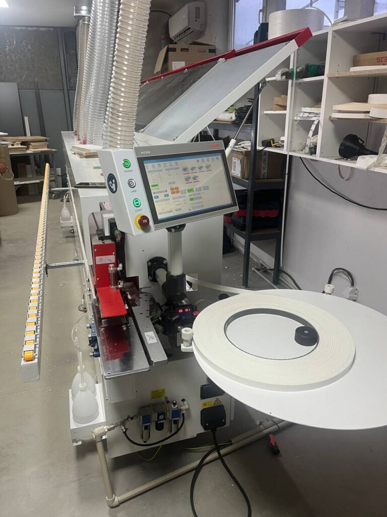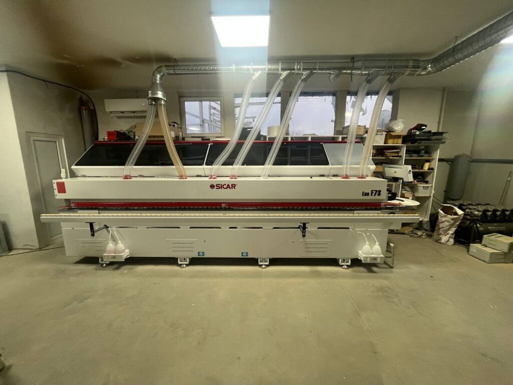Успешна доставка до наш клиент в гр.Казанлък. Фирма „КДА Делукс“ ЕООД, смени старата си кантираща машина с нова с предфрезоване и двумоторен корнер — нов модел от предлаганите от нас машини на Sicar ECO F7S.
