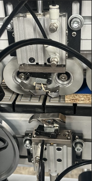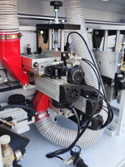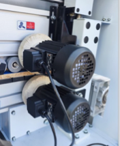 Възел за окрайчване на канта.Висококачествени двигатели за окрайчване 2 х 0,37 кв, и линейни направляващи за хода на двигателите осигуряват качествена и дългогодишна работа на машината. |