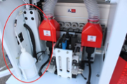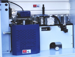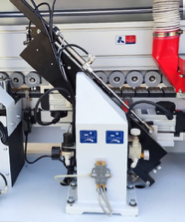 Инфрачервена лампа:за нагряване на детайла преди залепване , тази система помага за по качествено залепване на канта към детайла. Лесна работа с машината през зимата и в студени помещения. |