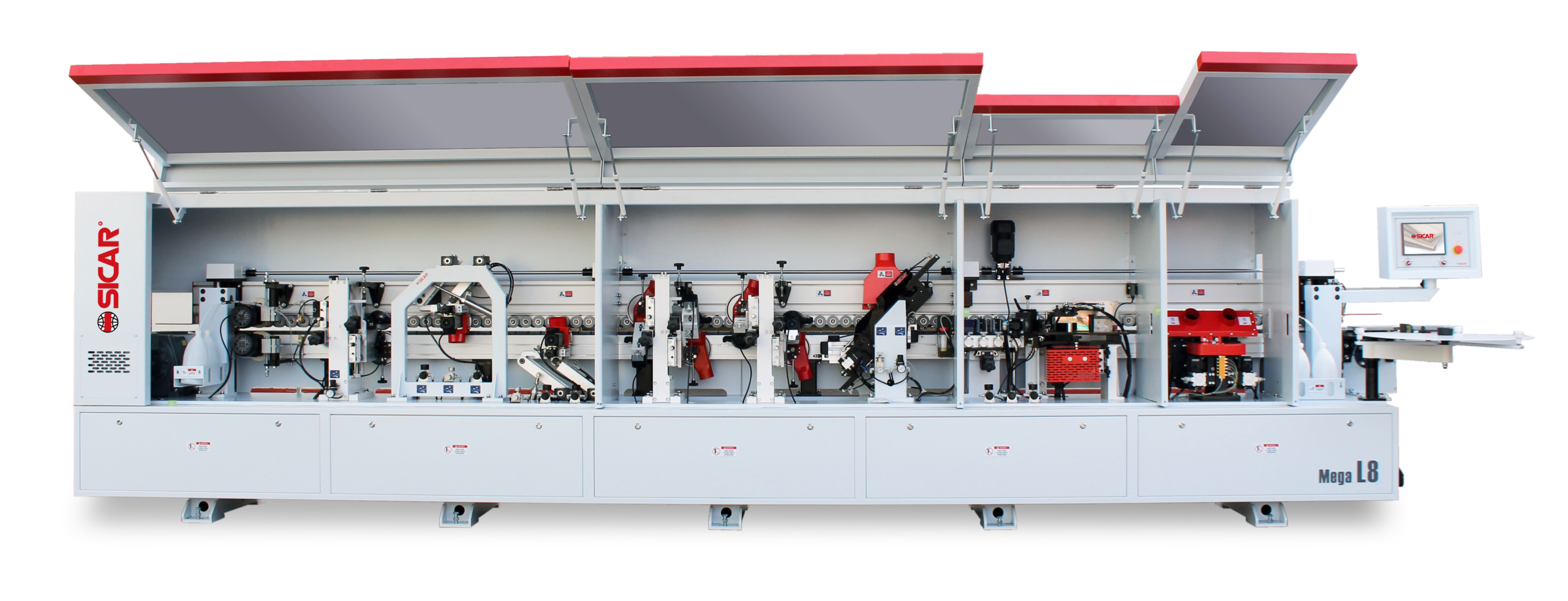 Инфрачервена лампа:за нагряване на детайла преди залепване , тази система помага за по качествено залепване на канта към детайла. Лесна работа с машината през зимата и в студени помещения. |