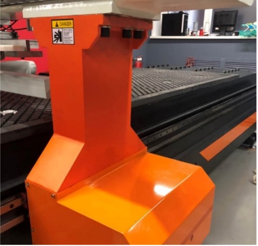Като се вземе предвид вероятността от натоварване, порталът на машината е инсталиран на мощни подсилени чугунени опори, които значително увеличават твърдостта на порталната конструкция, както и увеличават устойчивостта на конструкцията към деформация. Широката опорна платформа има голяма контактна площ, която ви позволява значително да увеличите товароносимостта на машината, без загуба на качество при обработка
