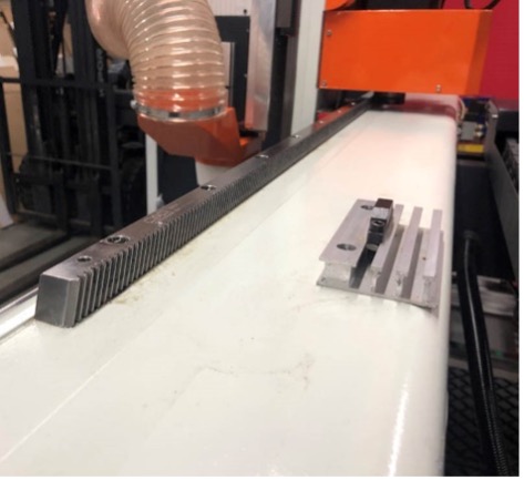 задвижване по ос – “X” “Y” конусни зъбни колела под ъгъл – POR (Германия) – което позволява плавна и прецизна обработка на материала с максимална точност ±0.05mm задвижване по ос – Z сачмено винтова механизъм – TBI Taiwan